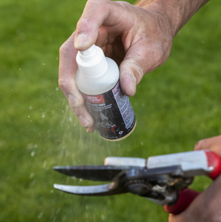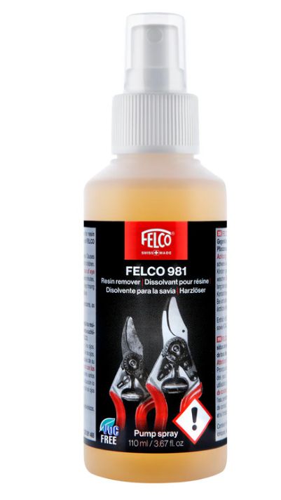 FELCO 981 ir efektīvs tīrīšanas līdzeklis dārza šķērēm un citiem griešanas instrumentiem, kas viegli noņem sveķus, augu sulu un netīrumus no asmeņiem. Regulāra instrumentu tīrīšana nodrošina vienmērīgu griezumu, mazāku berzi un ilgāku kalpošanas laiku.