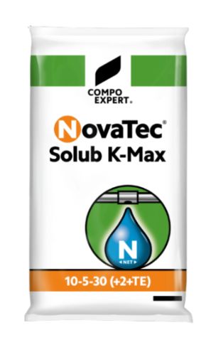 NovaTec® Solub K-Max 10-5-30 ir profesionāls, pilnībā ūdenī šķīstošs NPK mēslojums ar magniju, sēru un mikroelementiem, kas nodrošina augiem sabalansētu barošanu un veicina augstu ražību. Tas ir īpaši piemērots augļu, dārzeņu un dekoratīvo augu attīstības vēlākajiem posmiem – augļu nobriešanai un kvalitātes uzlabošanai.