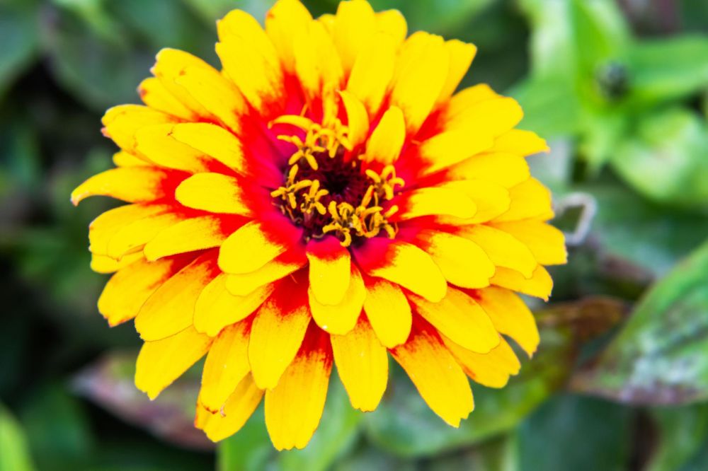 Cinnijas ‘Swizzle Scarlet-Yellow’ (Zinnia elegans) ir viengadīga vasaras puķe ar daļēji pildītiem, kontrastainiem ziediem spilgti dzeltenā krāsā ar koši sarkaniem ziedlapu galiem un dzeltenu centru. Ziedi ir dekoratīvi un bagātīgi veidojas no vasaras sākuma līdz rudens salnām.