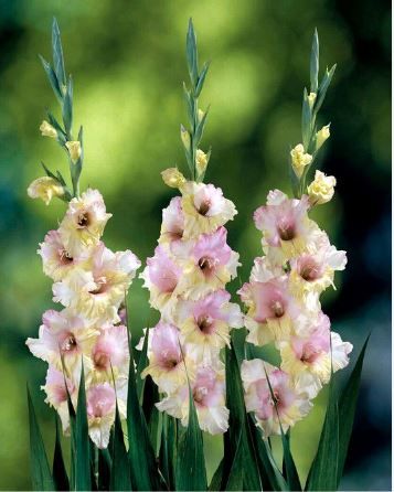 Gladiola Mon Amour ir eleganta gladiolu šķirne ar maigi krēmīgi dzelteniem ziediem. Smalkie, pasteļtoņos iekrāsotie ziedi piešķir puķu dobēm vieglu un romantisku izskatu.